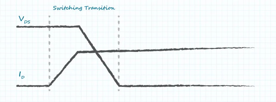 In addition to improving conduction losses, using GaN also reduces switching losses. Several factors contribute to switching losses, several of which can be improved by using GaN. One loss mechanism is due to the current flowing in the transistor before the drain-source voltage starts to drop, as shown in Figure 2. During this period, the losses (equal to the product of voltage and current) are very large. Increasing the speed at which the switch turns on will reduce the losses incurred during transitions. GaN transistors can be turned on faster than silicon transistors, so losses from this switching are reduced.